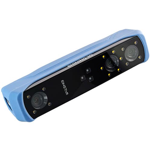 El Shining 3D Einstar es un escáner 3D compacto y ligero (220 x 46 x 55 mm, 0,5 kg) que combina precisión de hasta 0,1 mm, captura rápida a 14 fps y un amplio rango de trabajo (160 – 1400 mm). Incorpora 3 proyectores VCSEL infrarrojos, 2 cámaras de profundidad estéreo y una cámara RGB para conseguir escaneos estables tanto en interior como en exterior. De fácil configuraración está diseñado para un manejo sencillo y eficiente capaz de capturar detalles precisos a alta velocidad y con una excelente calidad.