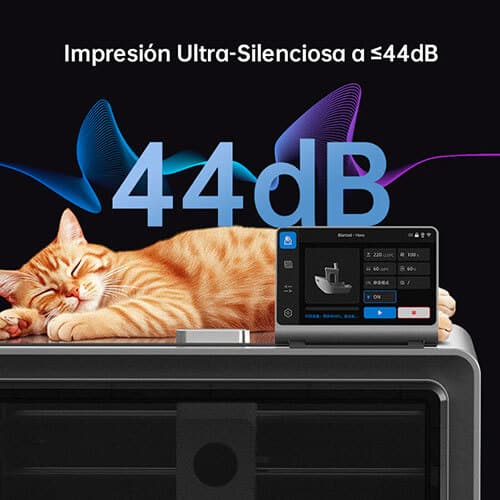 Su pantalla táctil ajustable y plegable de 4,3” facilita la navegación por los menús y el ajuste de parámetros de impresión. Además, su modo silencioso de 44 dB permite su uso en entornos domésticos y oficinas sin generar molestias, mientras que el modo estándar mantiene un nivel de ruido de solo 46 dB.