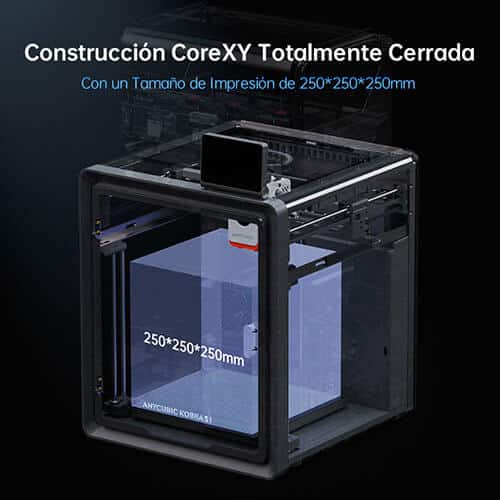 Ofrece un volumen de impresión de 250 x 250 x 250 mm y puede alcanzar una velocidad máxima de hasta 600 mm/s. Su diseño CoreXY cerrado y un hotend que alcanza temperaturas de hasta 320°C garantizan precisión y calidad en cada pieza.