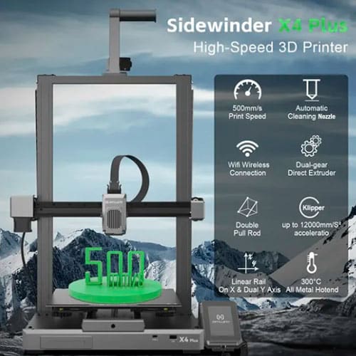 Ya sea para materializar tus proyectos más ambiciosos, para uso educativo o para explorar el vasto mundo de la impresión 3D, la Artillery SideWinder X4 Plus se posiciona como una elección inteligente, combinando alta calidad, rendimiento excepcional y una experiencia de usuario sin complicaciones. Sumérgete en la era de la impresión 3D con la Artillery X4 Plus y da vida a tus ideas con precisión y creatividad.